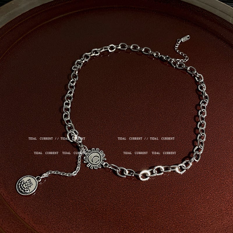 ヒップホップサンフラワーネックレスメスメタル鎖骨チェーンショートフロスティXHX