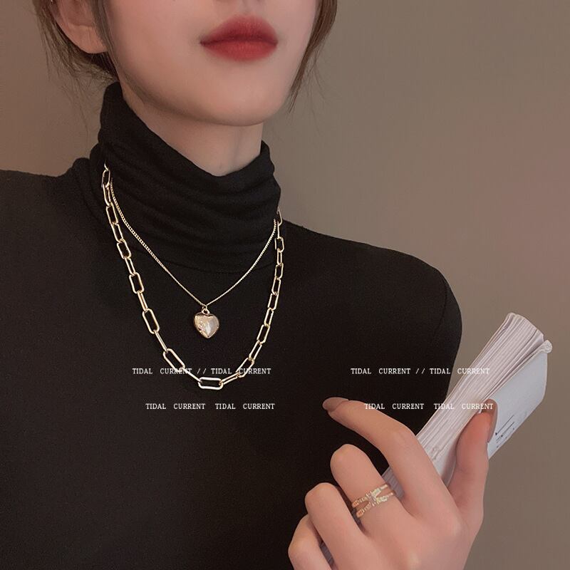 2022新しい2層ネックレス女性ライトラグジュアリーハイセンスコールド鎖骨チェーンペンダントXHX