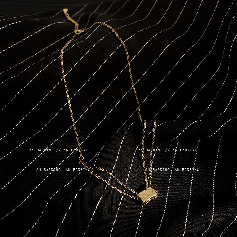 2022新しいネックレス女性用ダブルラミネート鎖骨チェーンダイヤモンドチェックペンダントデザインネックレスXHX