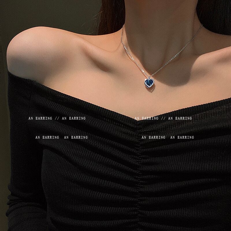 チタンスチールブルークリスタルネックレス女性コールド鎖骨チェーンデザインライトラグジュアリーハイセンスペンダントXHX