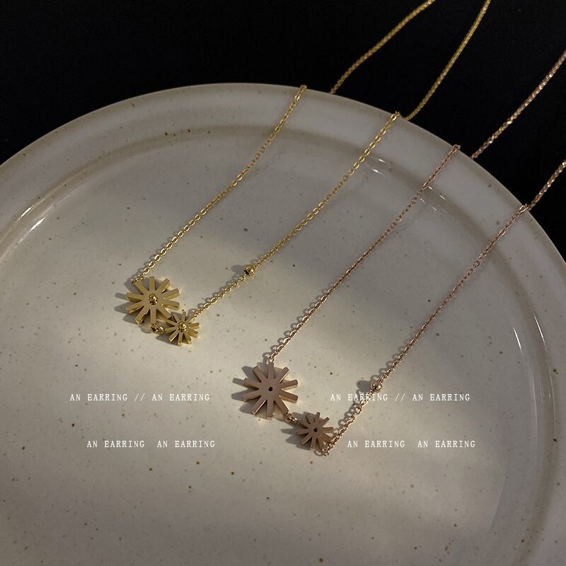 チタンスチールスノーフレークネックレス女性ローズゴールドデザインフロスティペンダントネックレスXHX