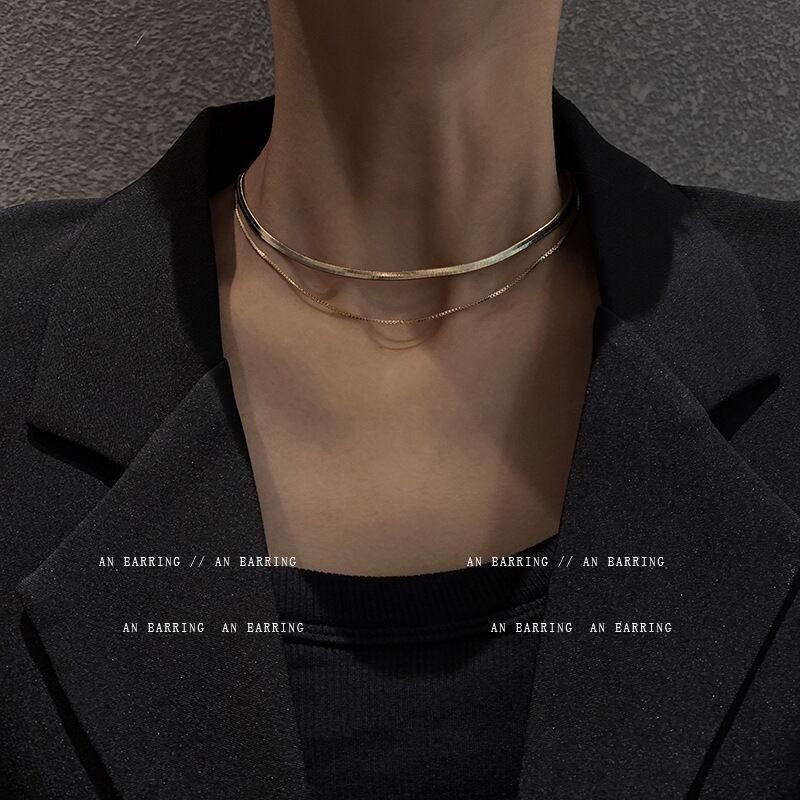 ワイドダブルレイヤーチタンスチールスネークボーン明るい表面鎖骨チェーンチョーカーフラットネックレスメスXHX
