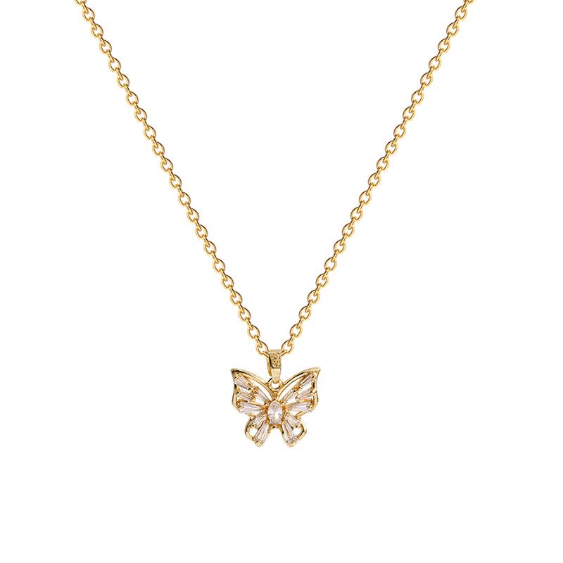 チタンスチールバタフライネックレス女性ライトラグジュアリーデザインジルコンペンダントコールド鎖骨チェーンXHX