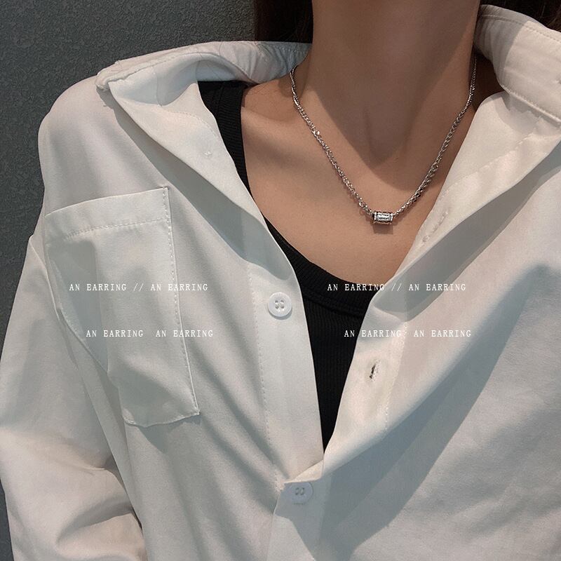 チタンスチールネックレス女性ヒップホップ円筒鎖骨チェーンライト高級衣料チェーンセーターチェーンXHX