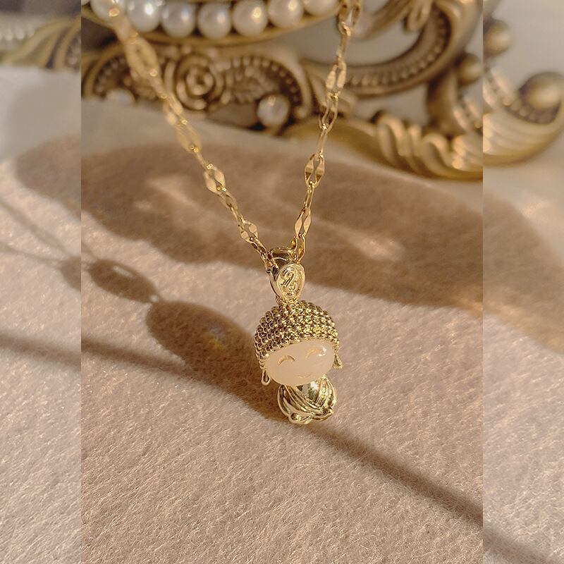 ゴールデンディスクマザーオブパールペンダントネックレスメスチタンスチール鎖骨チェーンネックレスXHX