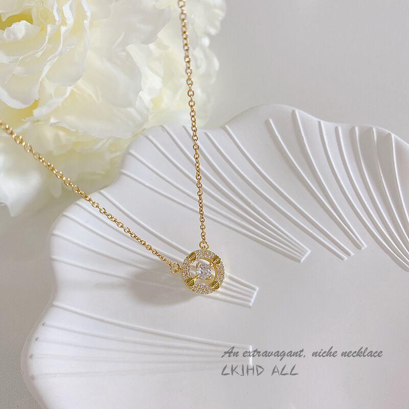 チタンスチールネックレスメスサークルジルコンペンダント鎖骨チェーンXHX