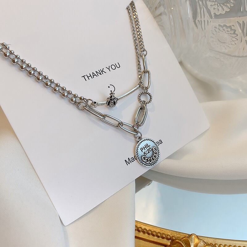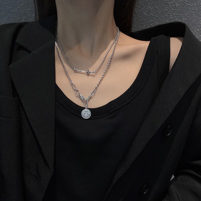 コールドスタッキングネックレスメスクラウンコインライトラグジュアリーダブルペンダント高品質チタンスチール鎖骨チェーンXHX