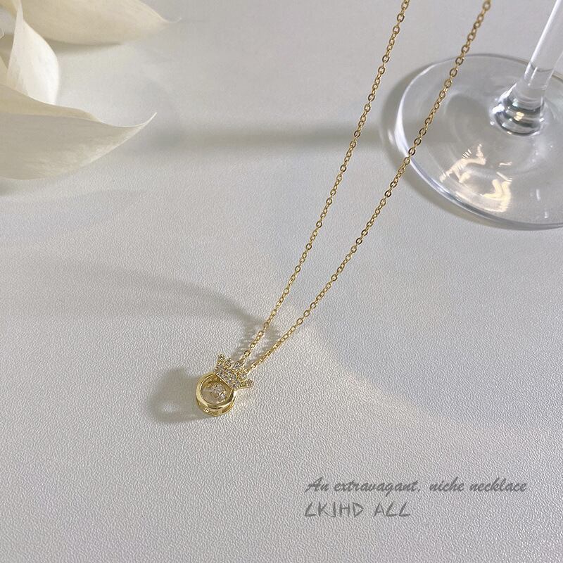 高品質のジルコンクラウンチタンスチールネックレス女性の軽い高級鎖骨チェーン2022XiaxinアクセサリーXHX