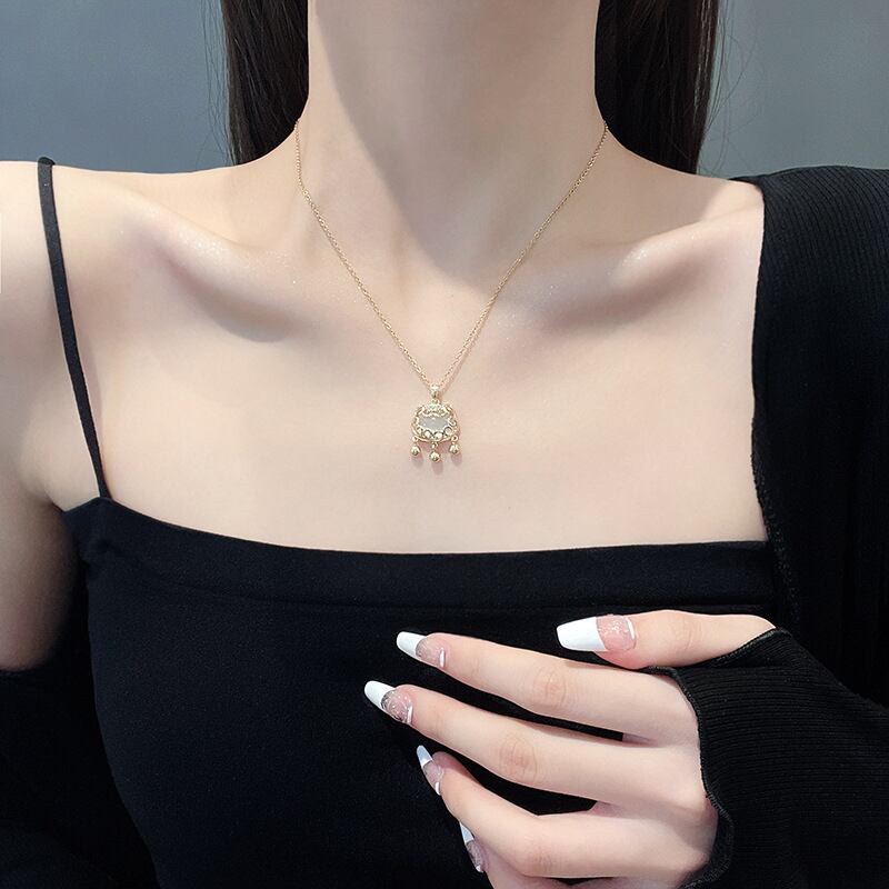 DouyinRuyiセーフロックオパールペンダントチタンスチールネックレス女性ライトラグジュアリーカントリー鎖骨チェーンXHX