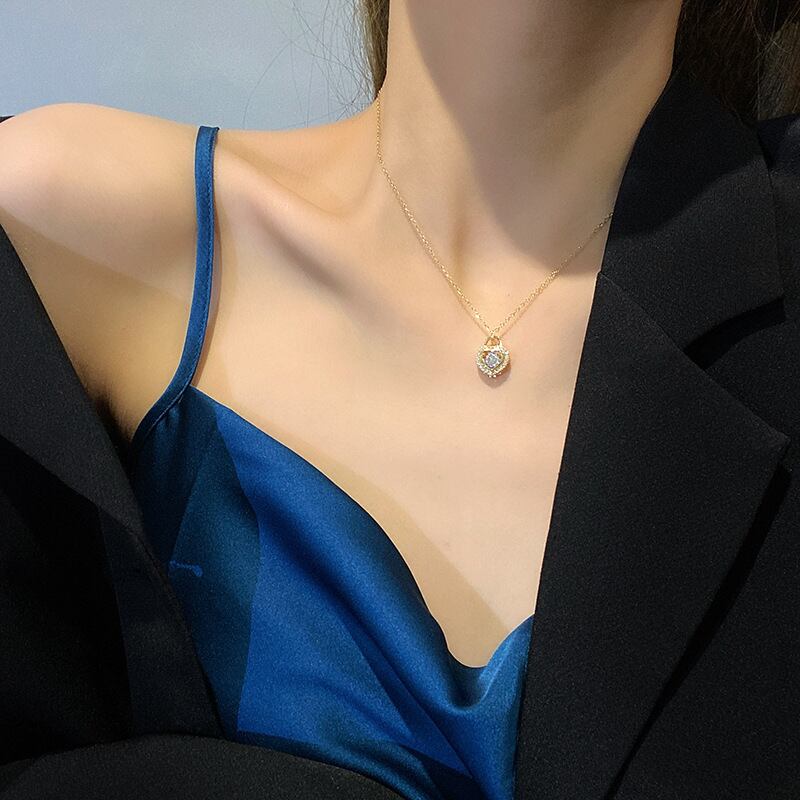 スウィートホローチタンスチールネックレス女性ライトラグジュアリー2022新しい鎖骨チェーンハート型ネックレスXHX