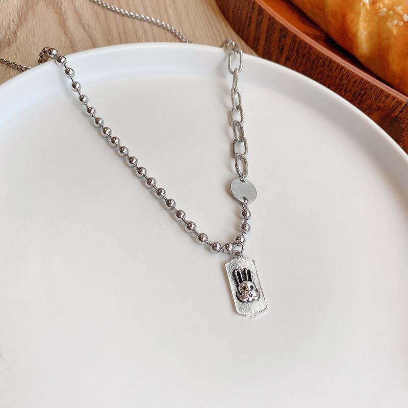 ヒップホップラビットラウンドスクエアコンビネーションチタンスチールネックレスメンズとレディースパンク服チェーンフローペンダントXHX