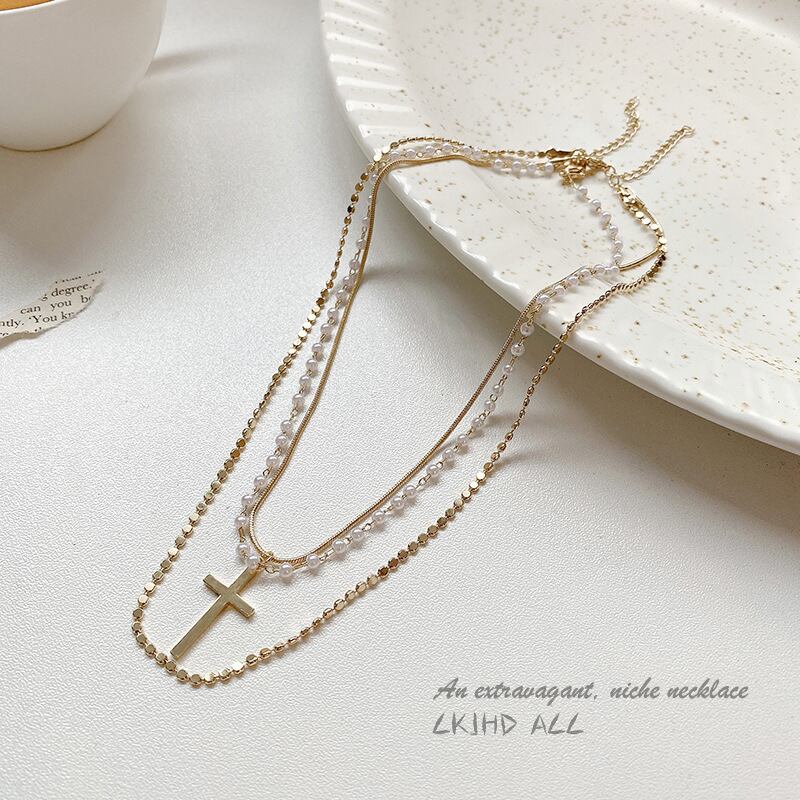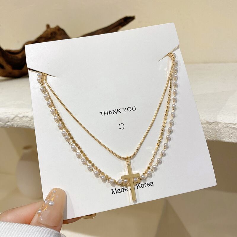 折りたたみパールクロスネックレスメス2022新しい甘いクールな鎖骨チェーンライトラグジュアリーネックレスXHX