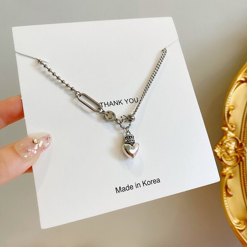 スマイリーフェイスペンダントチタンスチールネックレス女性ライトラグジュアリーフロスティ鎖骨チェーンXHX