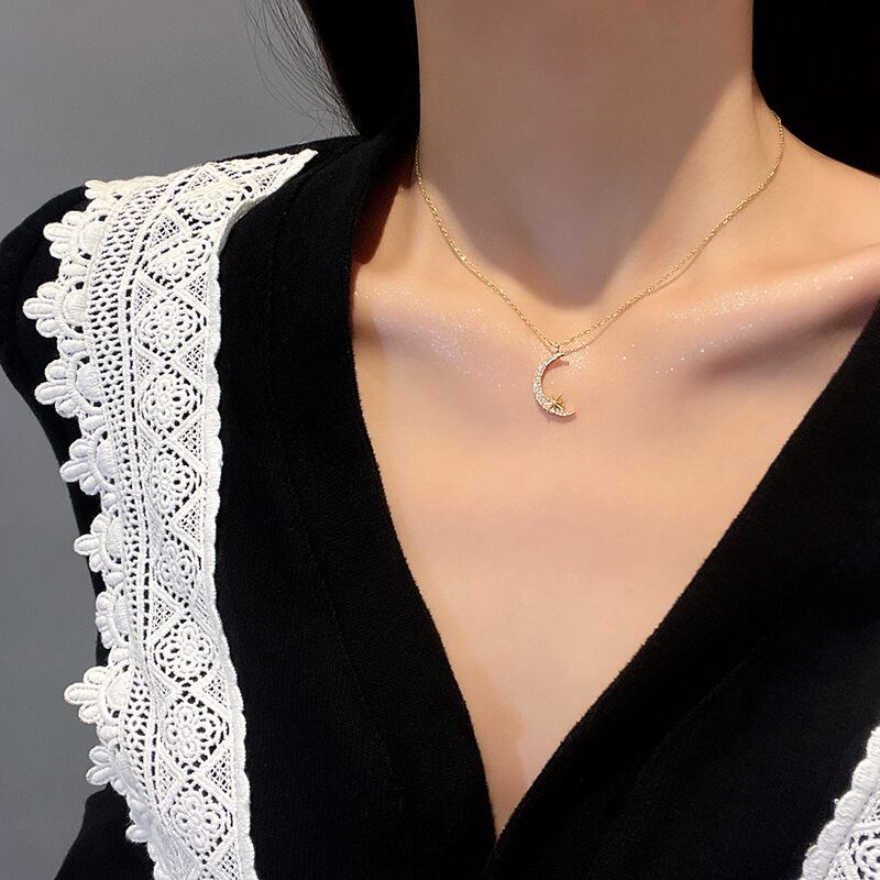 ムーンインレイジルコンチタンスチールネックレスメス8先の尖ったスターペンダント鎖骨チェーンXHX
