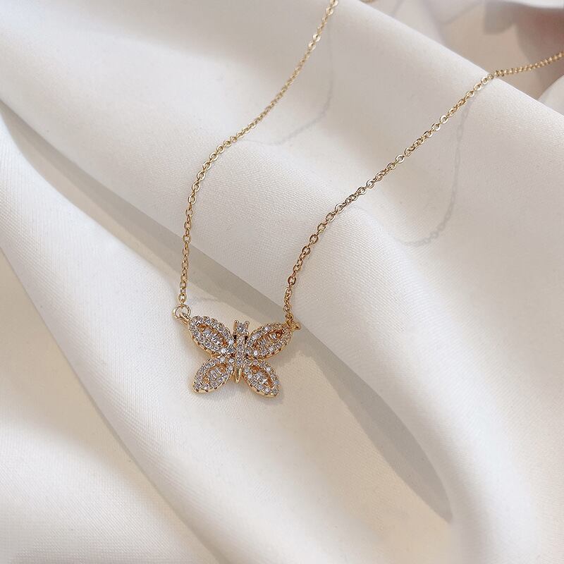 バタフライジルコンペンダントチタンスチール鎖骨チェーンコールドニューネックレスXHX