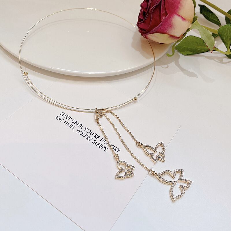 デイタッセルバタフライネックレス女性用ライトラグジュアリーペンダントコールドフロー鎖骨チェーンXHX