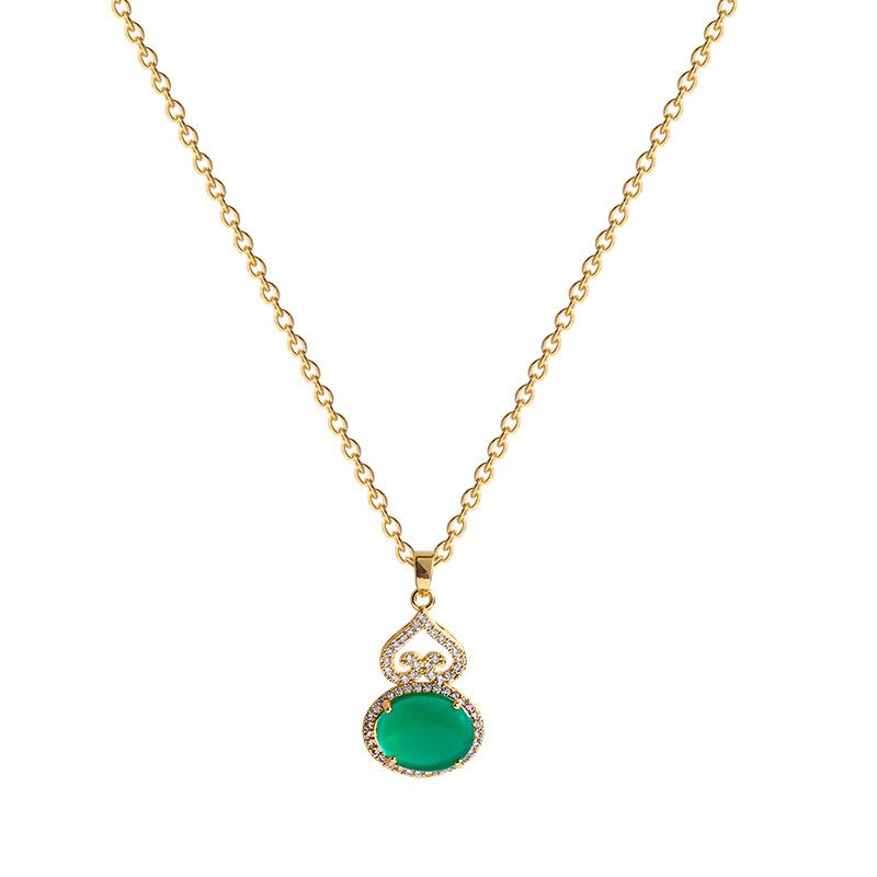 2020新しいネックレスチタンスチールライトラグジュアリー鎖骨チェーンカルセドニーひょうたんマイクロ象眼細工ペンダントXHX