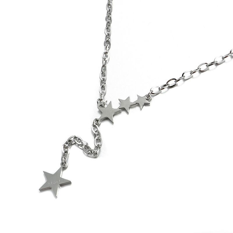 ペンタゴナルスターペンダントパールスプライシングネックレスメスヒップホップ鎖骨チェーンチタンスチール服チェーンアクセサリーXHX