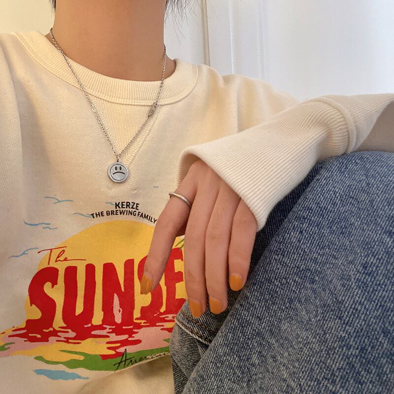 スマイリーフェイスリバーシブルネックレス秋冬服チェーンセーターチェーンコールドクラビクルチェーンXHX