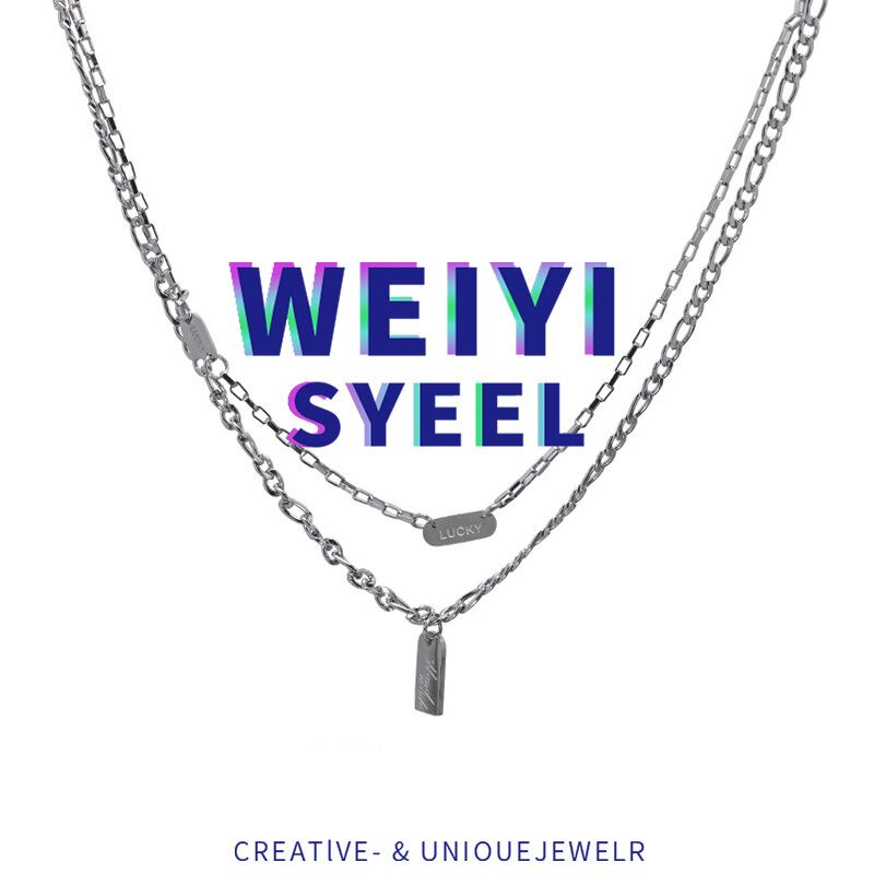 3つの幸運な2層チタンスチールネックレス女性愛好家の甘くてクールなスタック鎖骨チェーンXHX