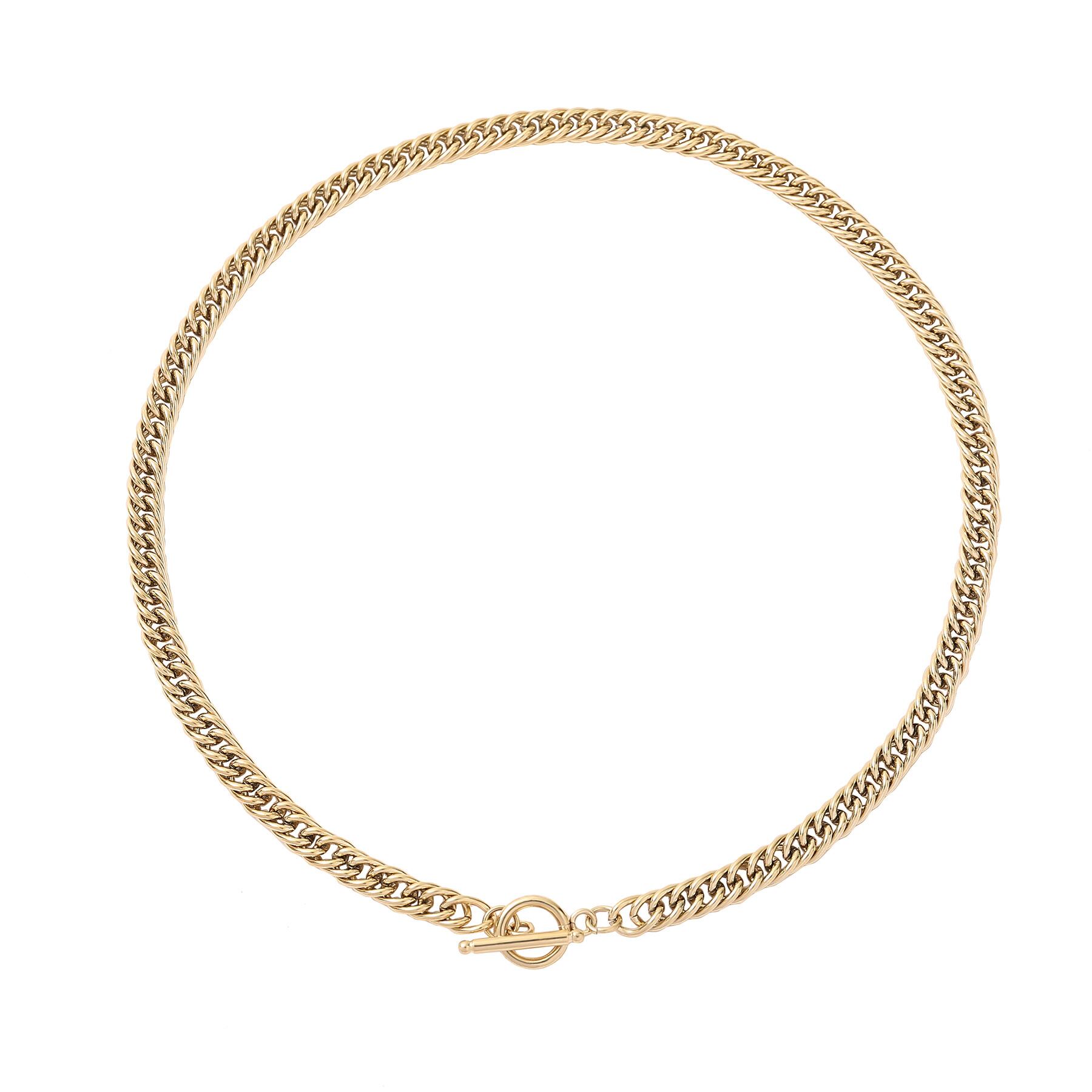 プラチナキューバチェーンネックレスチタンスチールネックレスショートレディース14K厚手リアルゴールドメッキヒップホップラストスチールネックレスXHX015