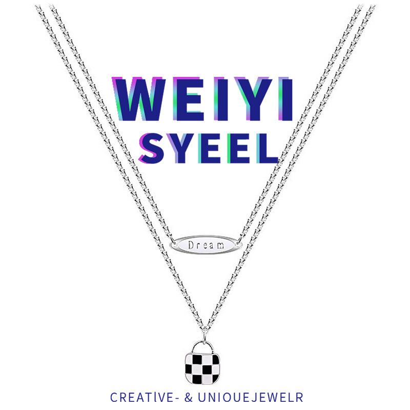 二重層の市松模様のバッグネックレス女性のハイエンドの黒と白の市松模様の服のチェーンXHX015