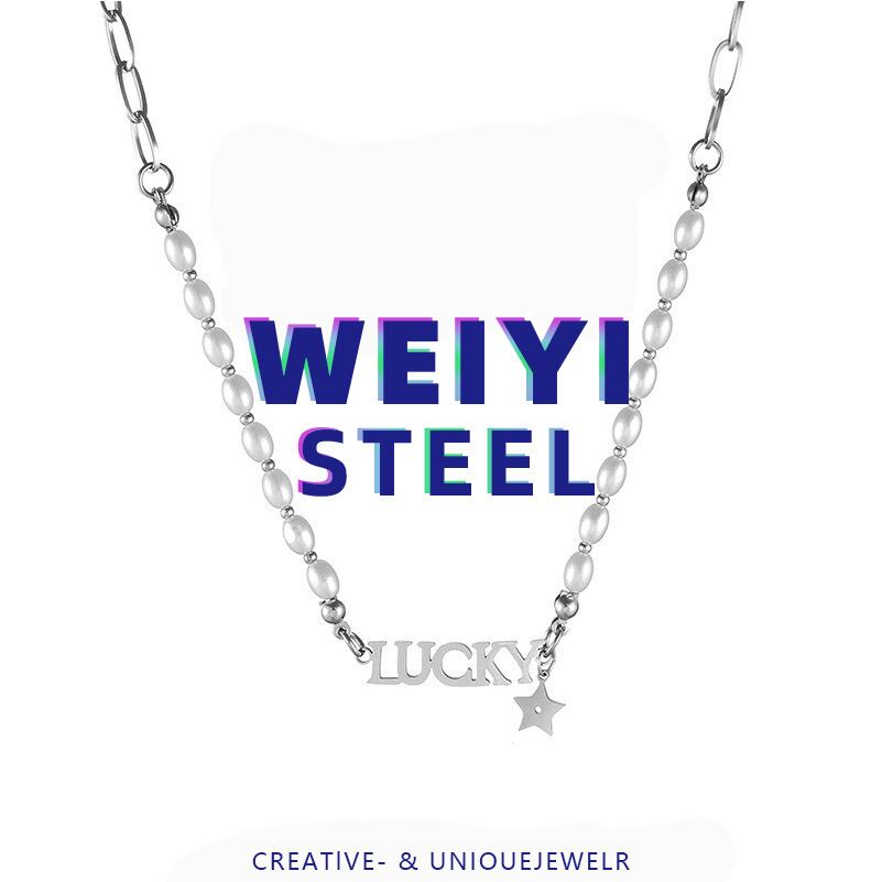 新しいチタンスチールラッキースタールールパールネックレス女性アクセサリージュエリーXHX015