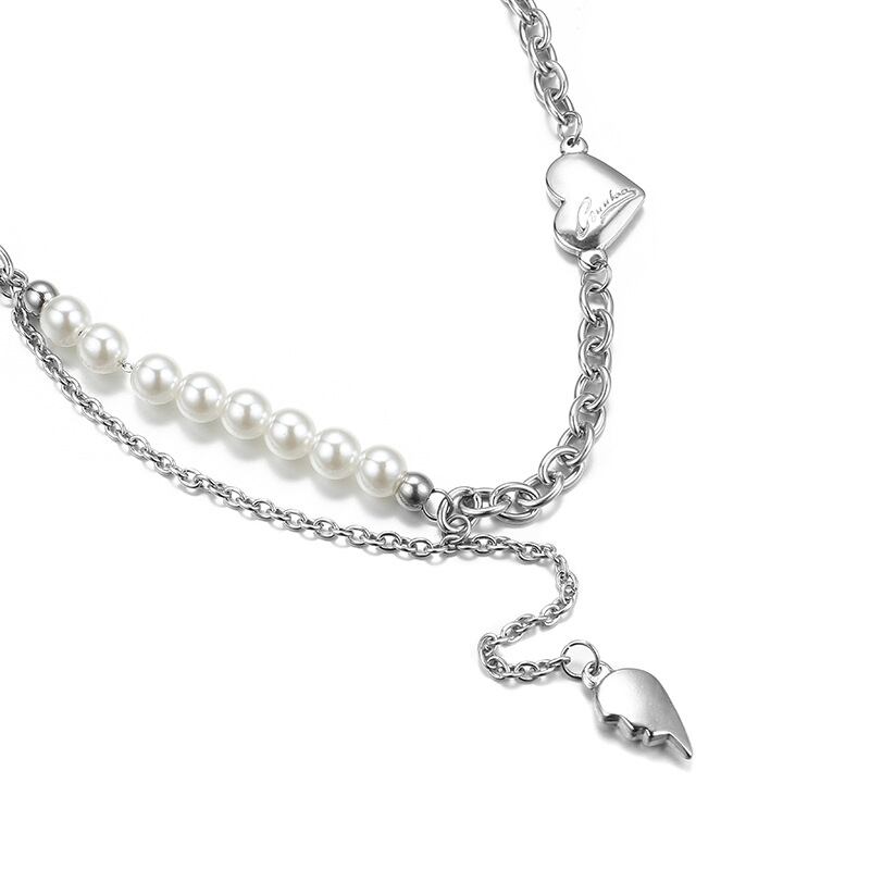 ヒップホップチタンスチールネックレスカラーチェンジパールチェーンスプライシングデザインヒップホップジュエリーライブソースXHX014015