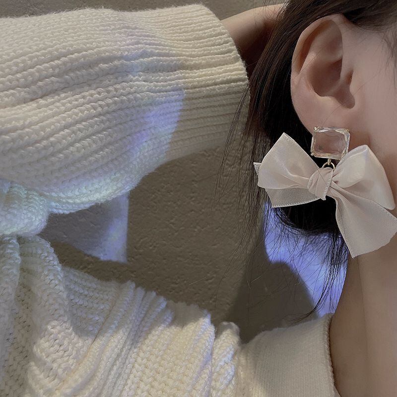 Sシルバーニードルスーパーフェアリーボウメスネットヤリングイヤリング優しい透明ラインストーンイヤージュエリーEHE