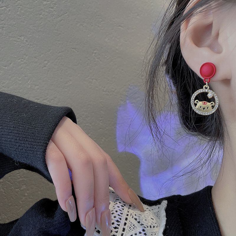 秋と冬の虎のイヤリング女性のハイエンドライトラグジュアリー赤いイヤリングイヤリングEHE