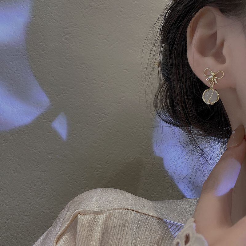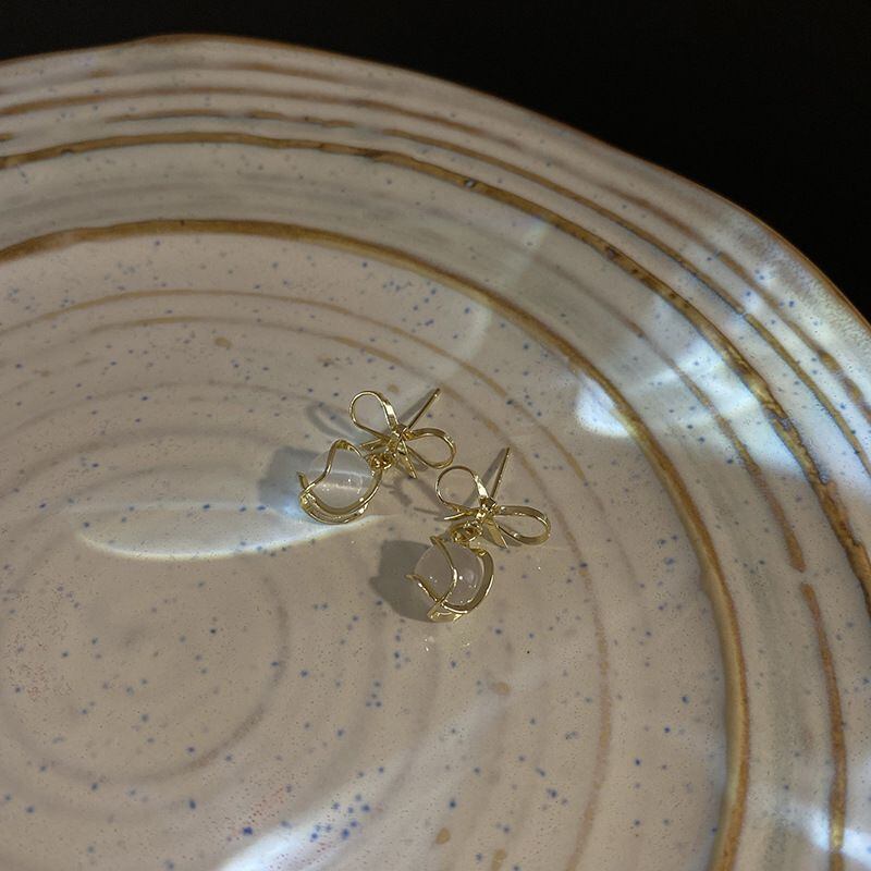 SシルバーニードルボウノットピアスメスオパールピアスイヤリングEHE