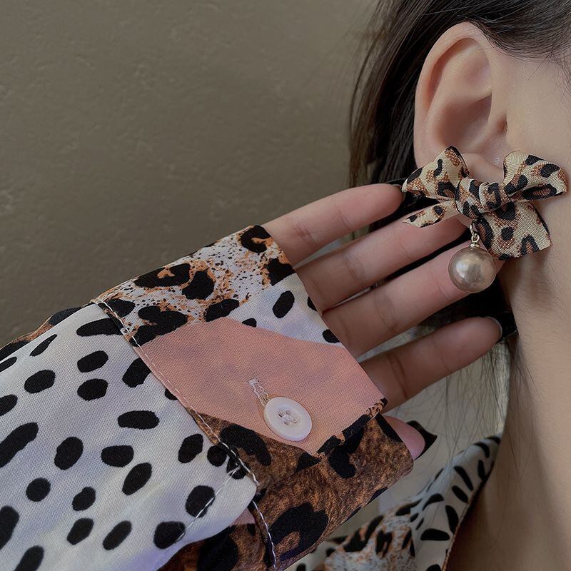 誇張されたヒョウ柄の弓のイヤリング女性のシルバーニードルスタッドピアスフロスティパールのイヤリングEHE