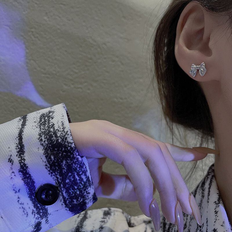 Sシルバーニードルコールドイヤリング女性デザインボウイヤリングハイエンドイヤリングEHE