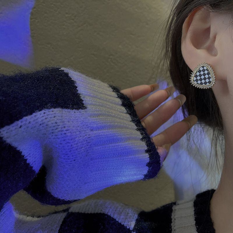 チェッカーボードラティスピアスメスSシルバーニードルハイエンドトライアングルピアスEHE