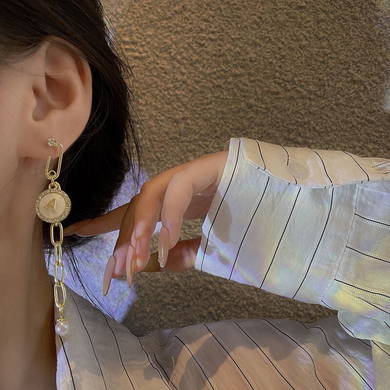 誇張された対称イヤリング女性SシルバーニードルチェーンスタッドピアスイヤージュエリーEHE