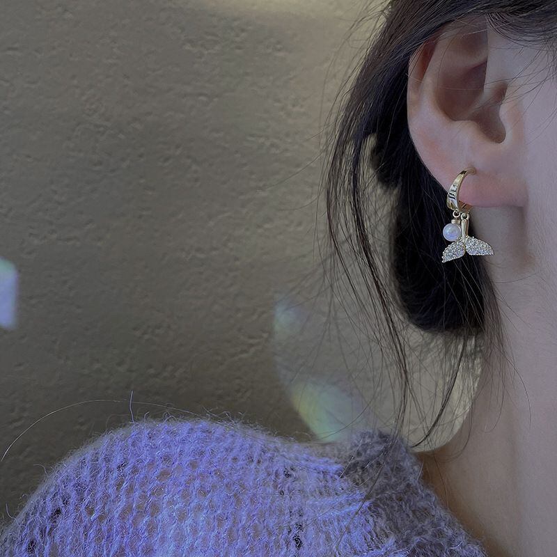 イヤリングSシルバーニードルニューフィッシュテールパールイヤリング女性用ハイエンドライトラグジュアリーイヤリングEHE