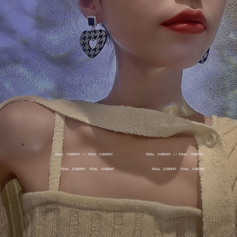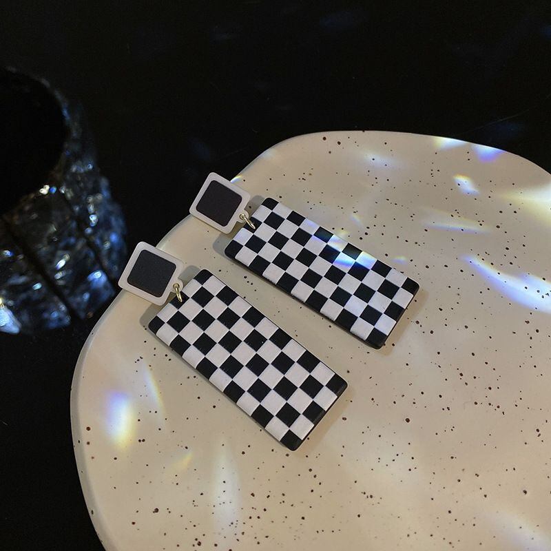Sシルバーニードルチェッカーボードイヤリング秋と冬の新しいイヤリング女性は特に寒くて誇張されたEHE