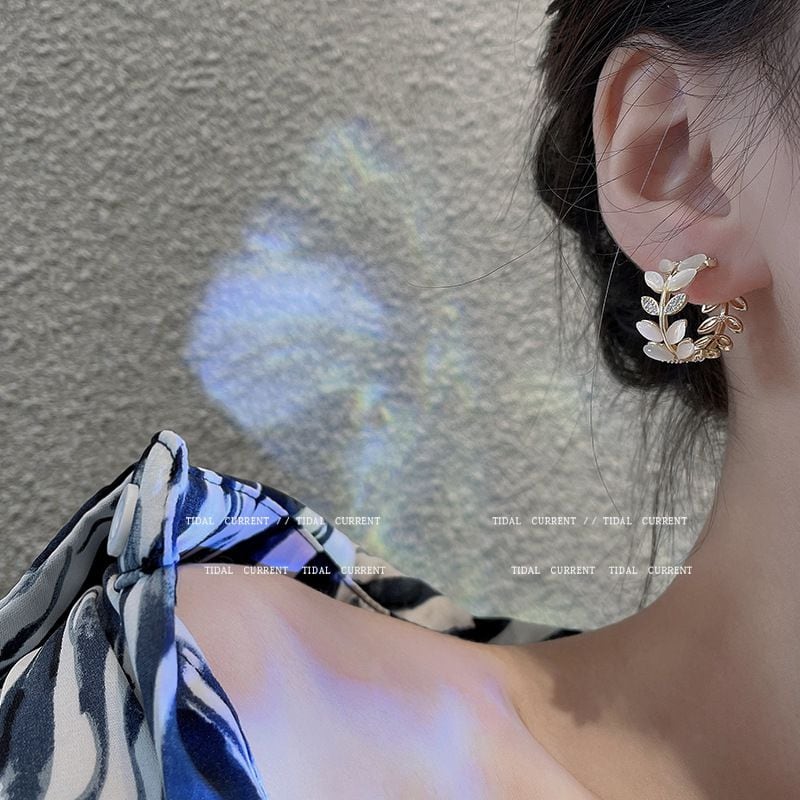 SシルバーニードルオパールオリーブブランチピアスライトラグジュアリーハイセンセーションピアスEHEEHE