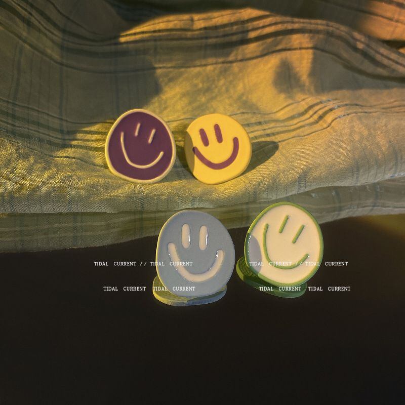 対称的なスマイリーフェイスのイヤリング、女性のイヤリング、甘くてかわいいシルバーの針のイヤリングEHE