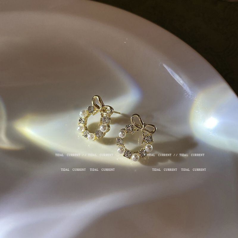 スーパーフェアリー高品質パールボウノットサークルイヤリング女性イヤリングイヤリングEHE