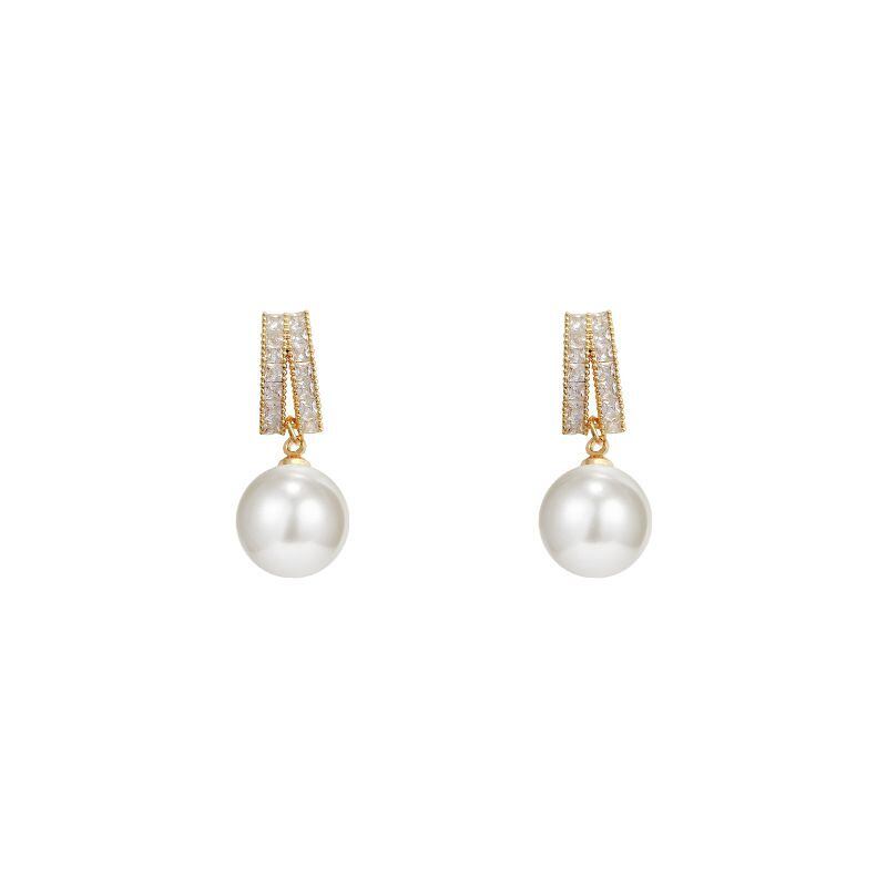 シルバーニードルマイクロインレイジルコン高品質パールイヤリングイヤリングイヤリングEHE