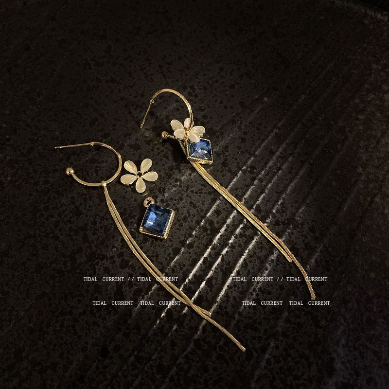 ロングタッセルイヤリングメスSシルバーニードルスーパーフェアリーフラワークリスタルイヤリングイヤリングEHE