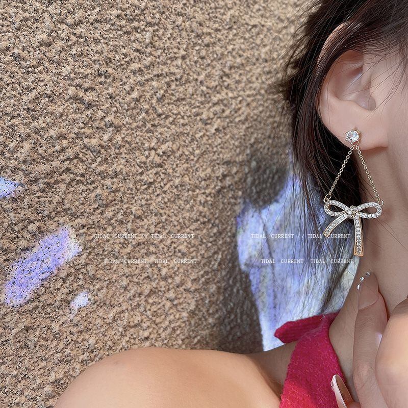 誇張された弓のイヤリングメスSシルバーピンイヤリングコールドイヤリングEHEEHE