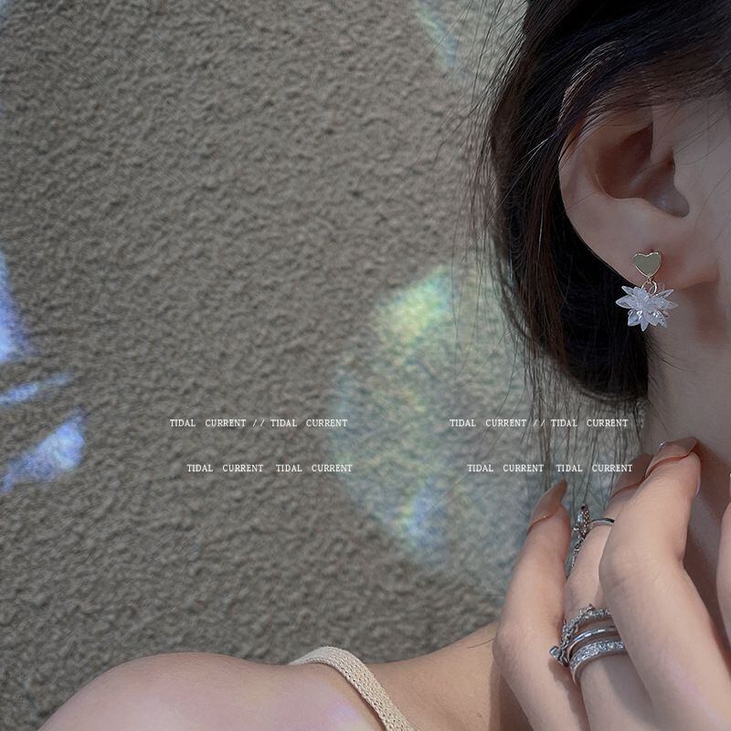 シルバーニードルスタッドピアス、メタルアイスフラワーピアス、ウィメンズライトラグジュアリー、ハイエンドセンス、コールドピアスEHE