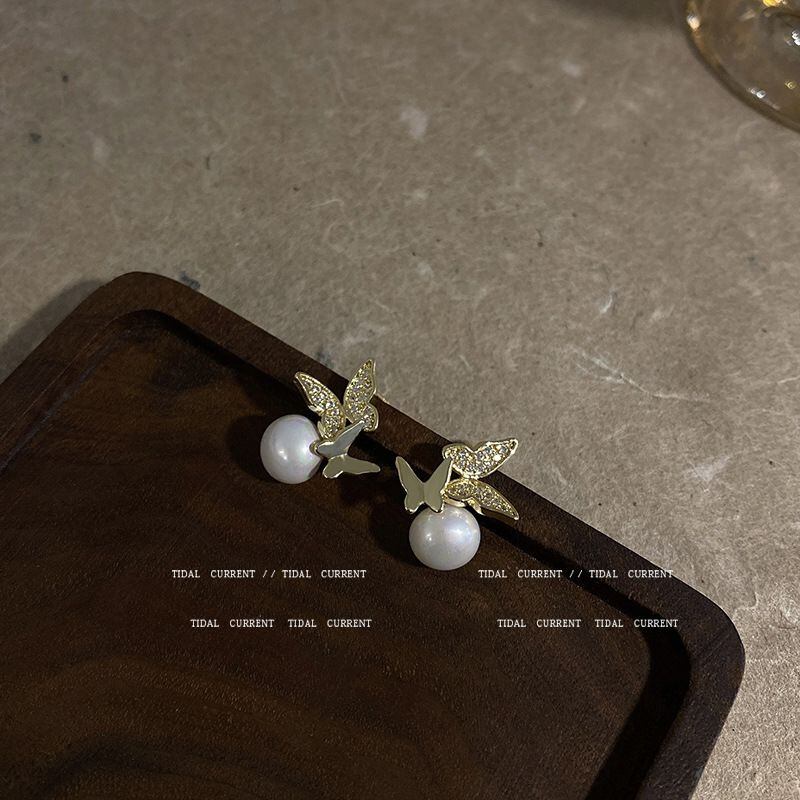 高品質の真珠のイヤリングメスSシルバーニードルバタフライメタルイヤリングイヤリングEHEEHE