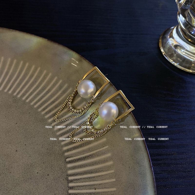 Sシルバーニードルイヤリングメスロングチェーンピアス誇張パールピアスEHE