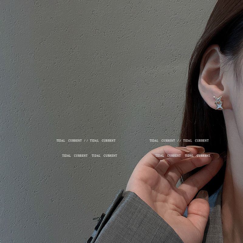 Sシルバーニードルスタースタッドピアス女性用イヤリングフロスティイヤージュエリーEHE