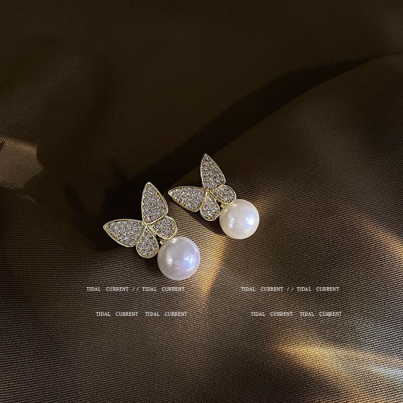 マイクロインレイジルコンバタフライイヤリングSシルバーニードルハイエンドパールイヤリングイヤリングEHEEHE