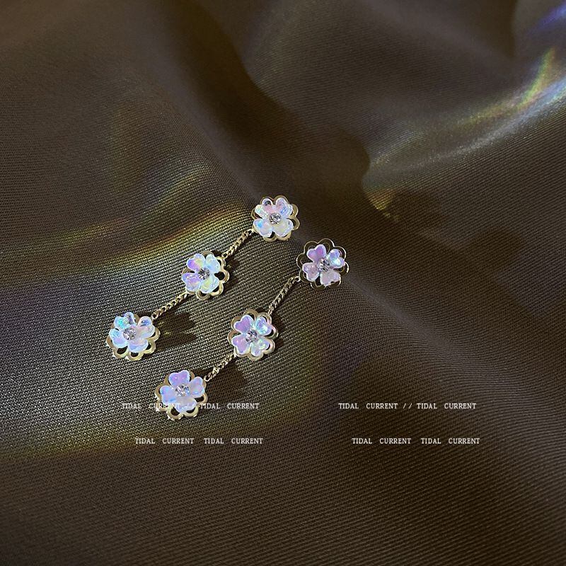 Sシルバーニードルロングタッセルフラワーピアス女性イヤリングコールドイヤージュエリーEHEEHE
