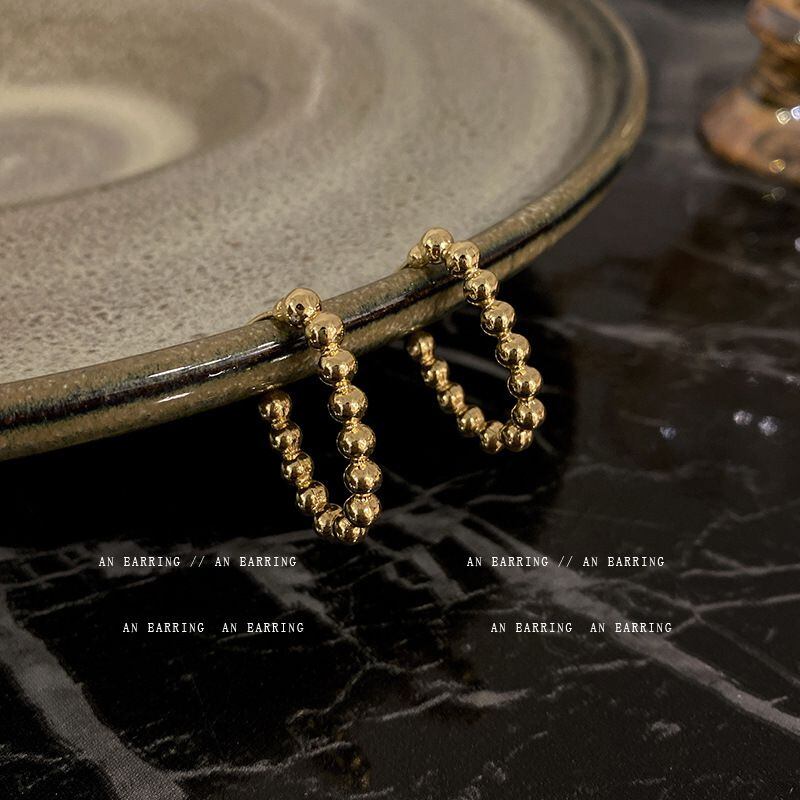 Sシルバーニードル、メタルラウンドビーズスプライシングイヤリング、ライトラグジュアリーイヤリング、イヤリング、イヤリングEHE